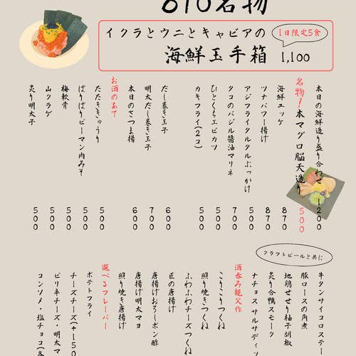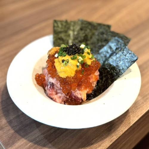 名物は、原価率100%超えの贅沢メニュー「イクラとウニとキャビアの海鮮玉手箱」。